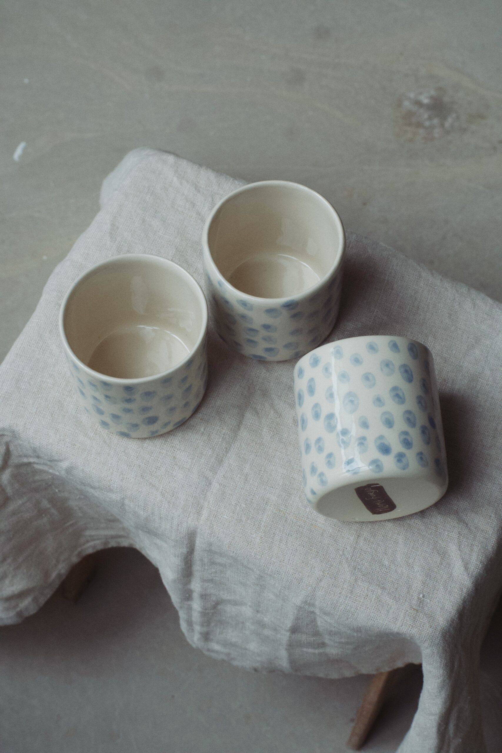 Czarki Azul, to moje ukochane połączenie kolorystyczne kremowego i niebieskiego. Błękitne łezki na naczyniach namalowałam ręcznie tworząc rustykalny wzór. Każda czarka wykonana została ręcznie. Każda jest unikatowa i niepowtarzalna.