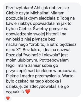 Mega wartościowe i z życia wzięte doświadczenia z pierwszej ręki, opisane w taki sposób że łatwo się czyta i wchodzi w głowę. Dziękuje że tak autentycznie podzieliłas się swoją drogą! Mam tyle przemyśleń… przede wszystkim, bój się ale działaj!