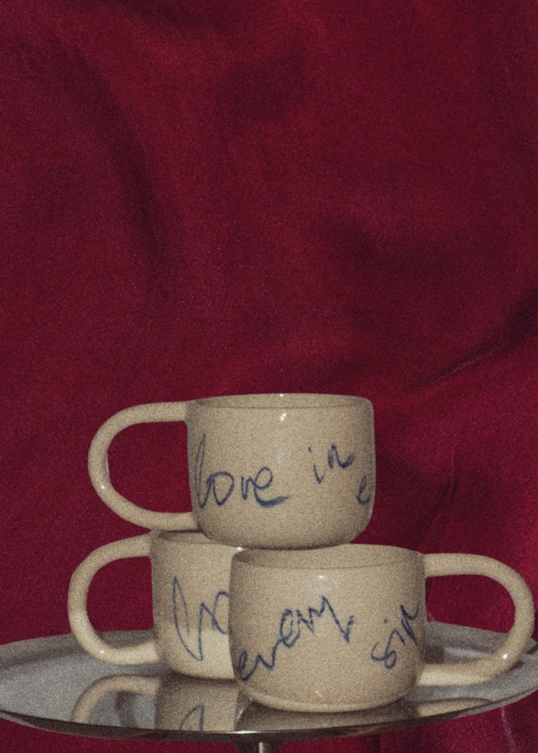Kubki wytoczone zostały na kole garncarskim, co sprawia, że każdy z nich jest wyjątkowy i unikatowy. Napisy na kubkach wykonane są kredką przeznaczoną do ceramiki.